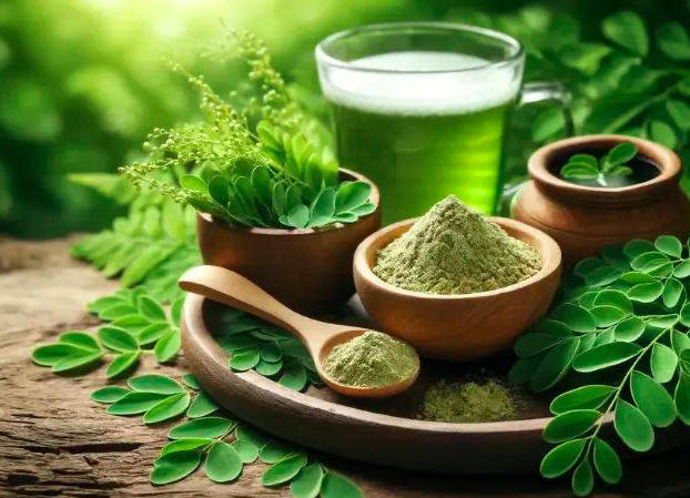 Le moringa, souvent surnommé arbre de vie, est une véritable mine de nutriments. Ses feuilles contiennent des protéines végétales complètes, du calcium, du fer, des vitamines A, C et E, ainsi que de puissants antioxydants. Intégré régulièrement à l’alimentation sous forme de poudre, de sauce ou d’infusion, le moringa contribue à renforcer le système immunitaire, à lutter contre la fatigue et à prévenir certaines carences nutritionnelles. Il est particulièrement recommandé aux femmes, notamment pendant la grossesse et l’allaitement, ainsi qu’aux enfants en période de croissance.
